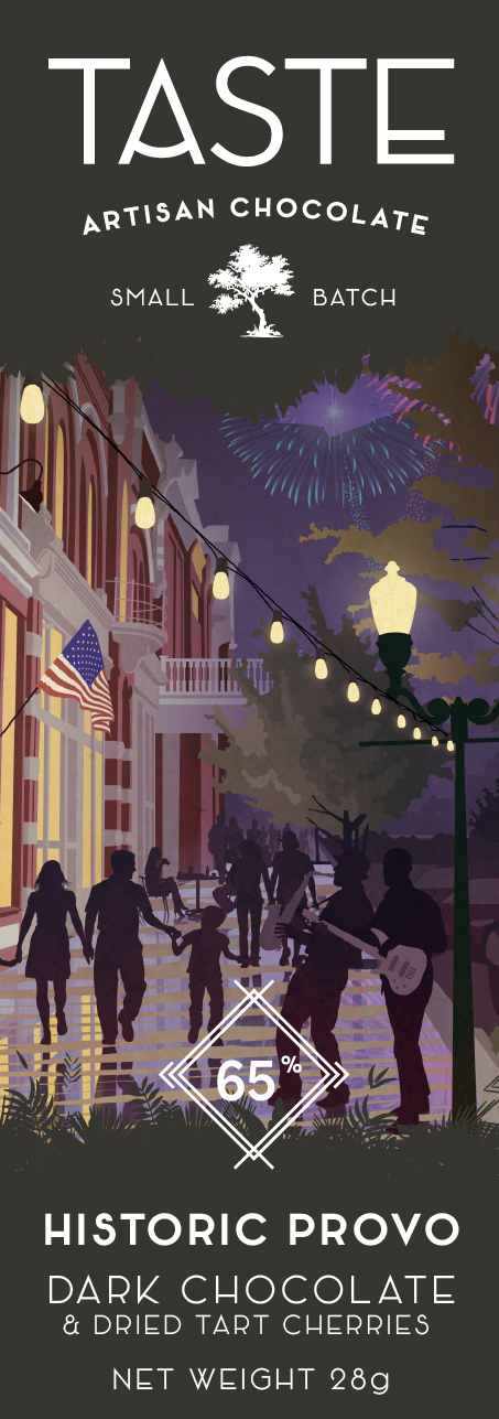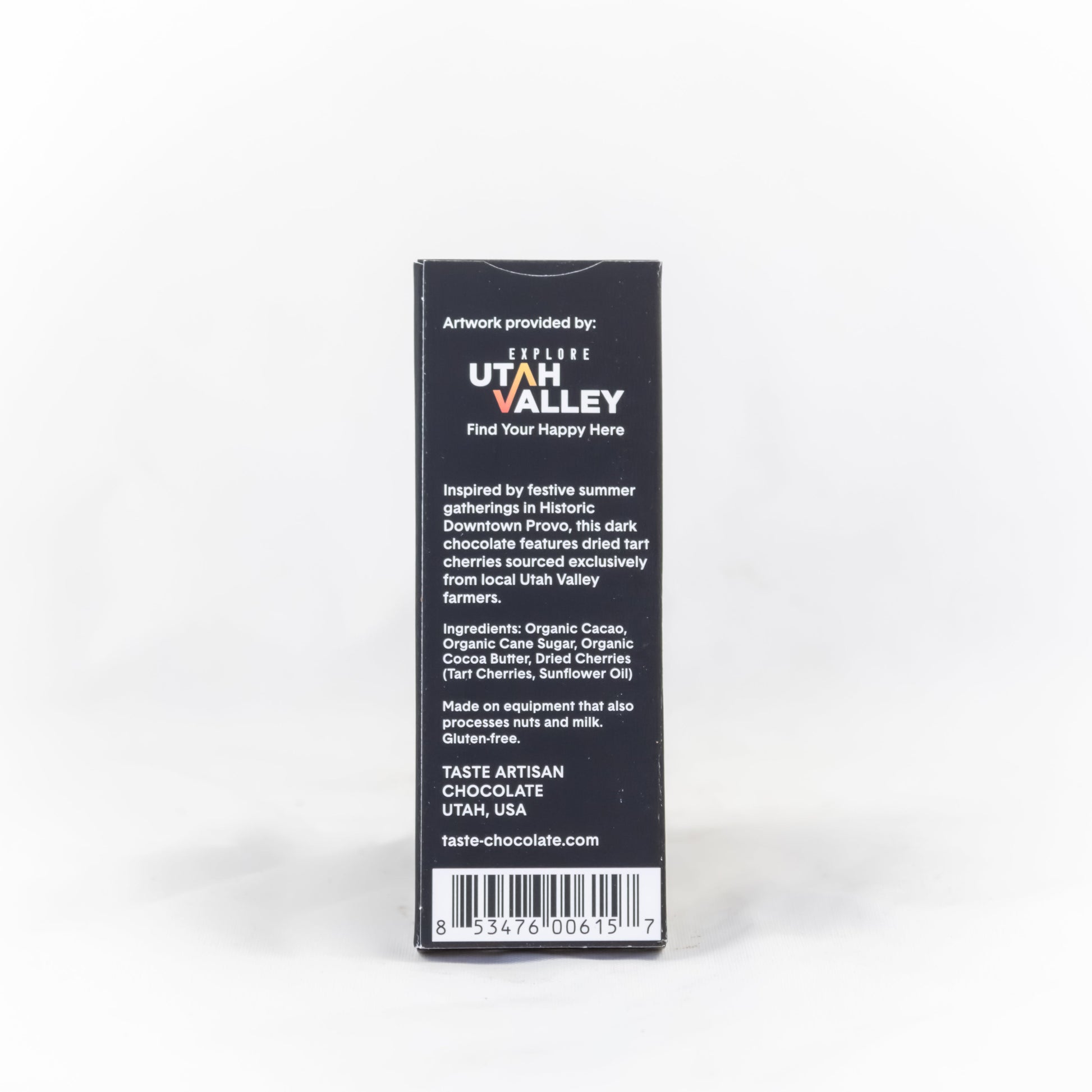Inspired by festive summer gatherings in Historic Downtown Provo, this dark chocolate features dried tart cherries sourced exclusively from local Utah Valley farmers.
