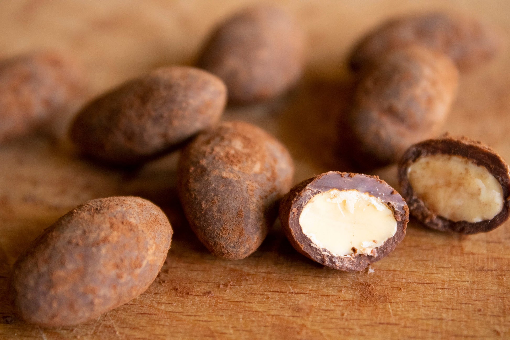 These rustic treats are all made with locally grown nuts and fruit. Coated in either dark or milk chocolate from our own factory, then lightly dusted with cocoa powder for a natural, matte finish. Great for snacking or as an addition to a gourmet trail mix.